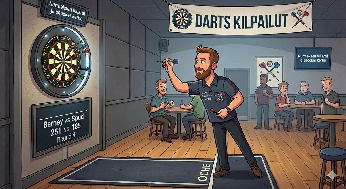 Järjestävä taho, paikallinen Darts porukka. ilmoittautumiset Pe klo 18 mennessä Kostianin Juhalle nro 050 5241 541.