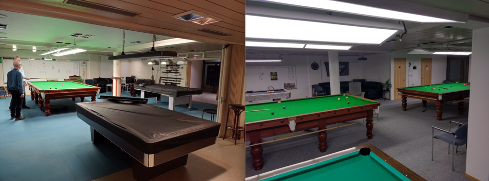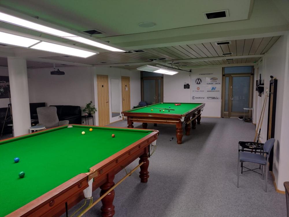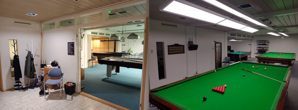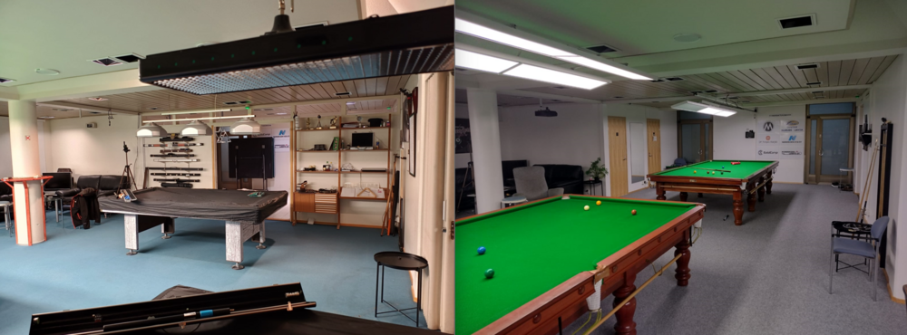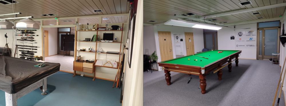 Kevään selvitystöiden, lupa-asioiden ja hakuprosessin jälkeen pääsimme aloittamaan tilojen saneerausta. Homma alkoi väliseinän purkutöillä, jota seurasi seinien tasoittelut + maalaukset. Sen jälkeen päästiin laittamaan matot lattiaan ja asentamaan pöytiä uusille paikoille. Samalla uusimme verat ja vallikumeja. Tuskallisen pöytien säätämisen jälkeen pääsimme viimeistelemään tiloja. Tilasimme uusia pallosarjoja ja uusimme pöytien valot sekä muutakin tarpeistoa että saamme pidettyä pelitilat, pöydät ja välineet kunnossa.